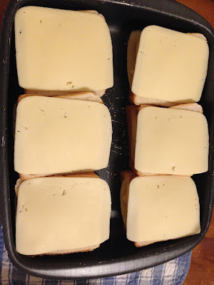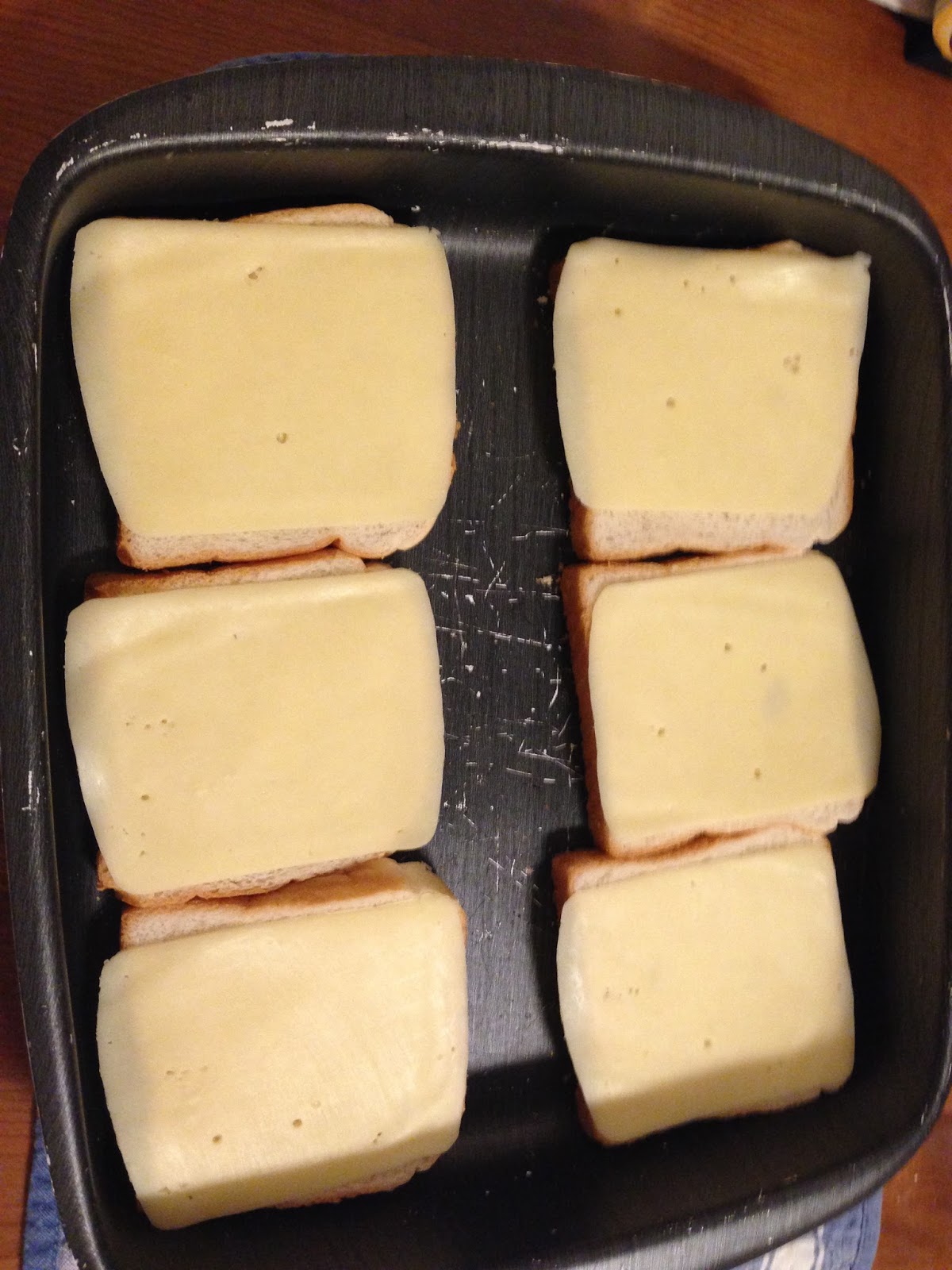 Por último, uma fatia de pão e outra de queijo.