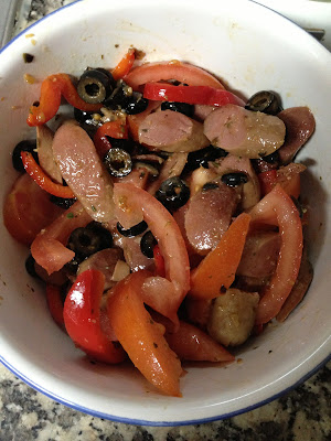 Lembram-se da pizza que fiz a semana passada?! Sobrou-me molho para pizza e salsichas!!! Hoje quando cheguei a casa não estava com espírito para estar muito tempo na cozinha então aconteceu este belo pratinho ;)