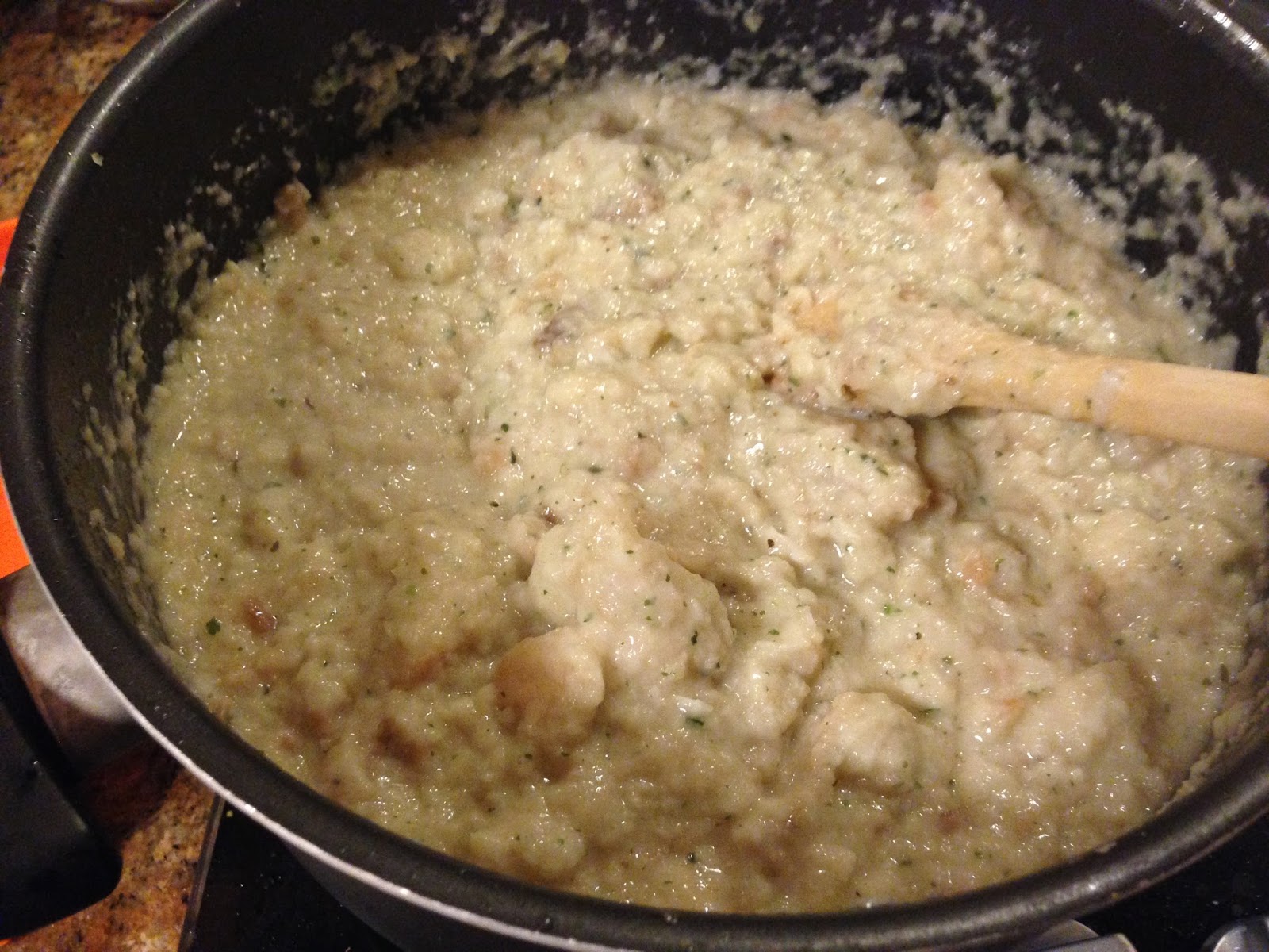 Quando o peixe estiver bem cozinhado adicione o pão escorrido e misture bem. Caso seja necessário junte um pouco de água e retifique os temperos.